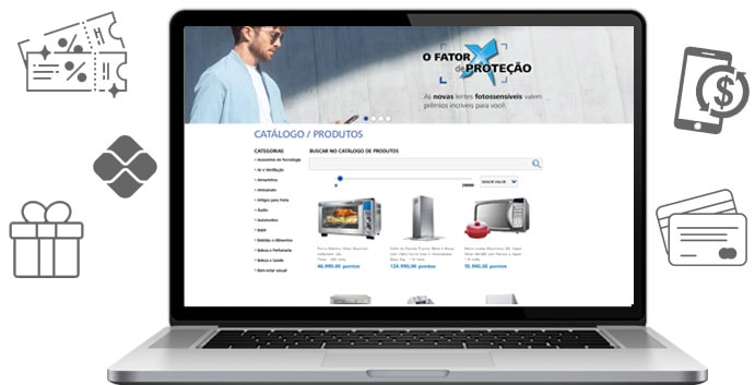 Traz um catálogo de resgate renovado, com mais opções como pontos na conta corrente e opções de vouchers.